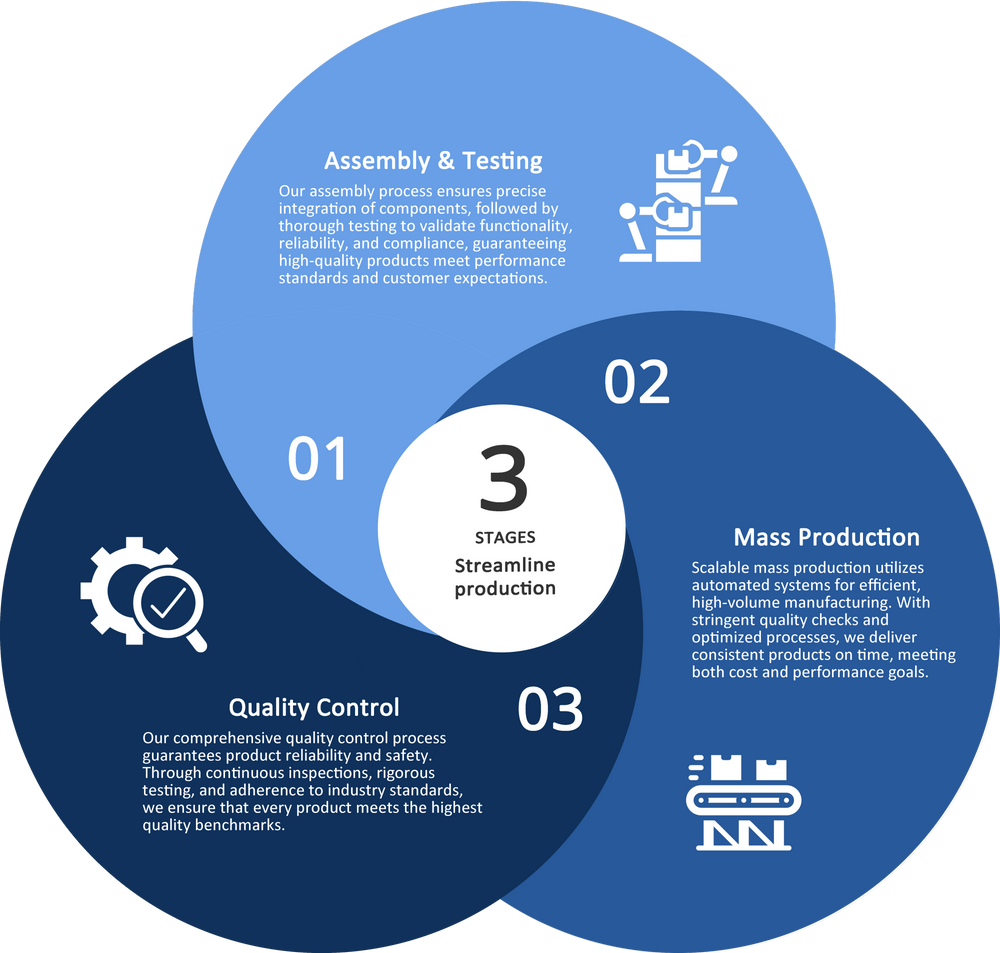 At AJE, we pride ourselves on the seamless transition from design to full-scale production. Our comprehensive manufacturing services ensure that each stage, from assembly to testing, mass production, and quality control, is meticulously executed to meet our high standards.
